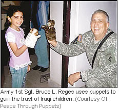 Likewise, Reges said, one of the sergeants in his civil affairs team was skeptical but agreed to try the puppets, giving them to some children he encountered. "He came back with this incredible look on his face," Reges said. "When it works, it's like magic."